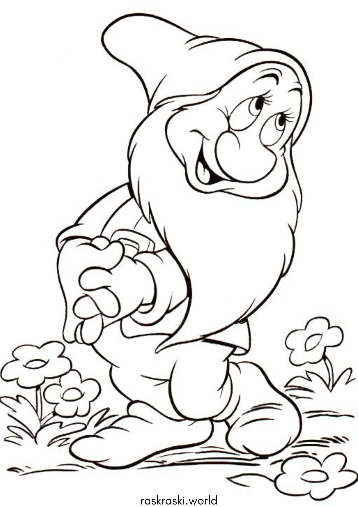 Раскраска Гном Скромник (Белоснежка и семь гномов)