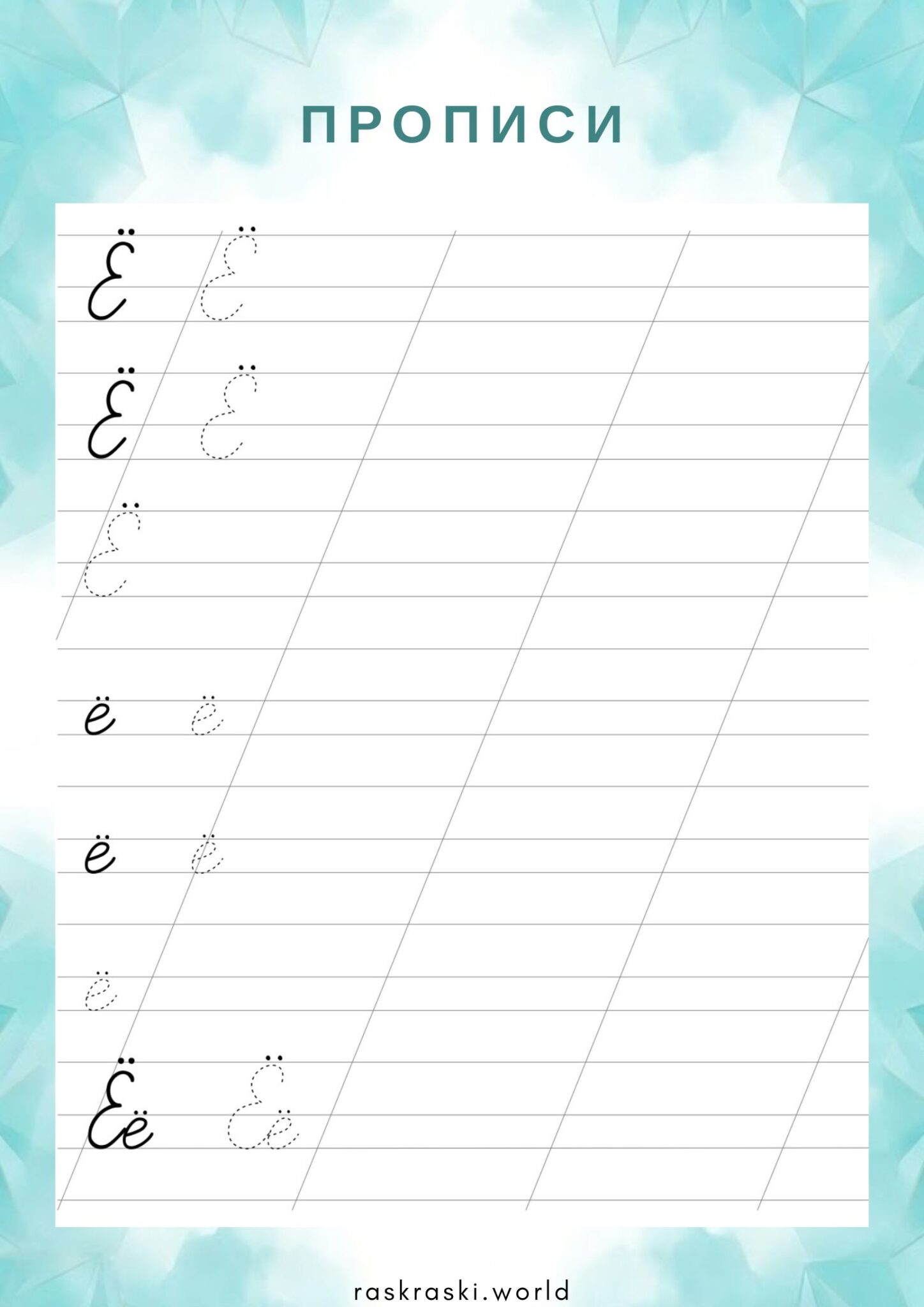 Прописи буква Ё — прописная и маленькая