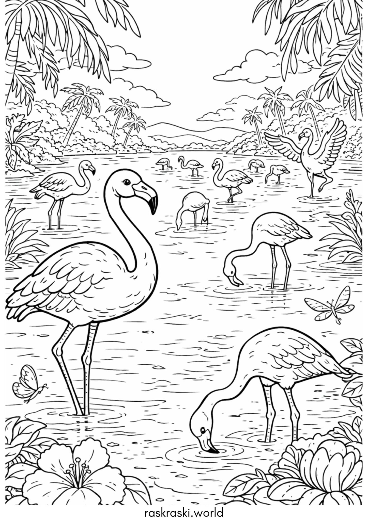 Раскраска Птица — фламинго