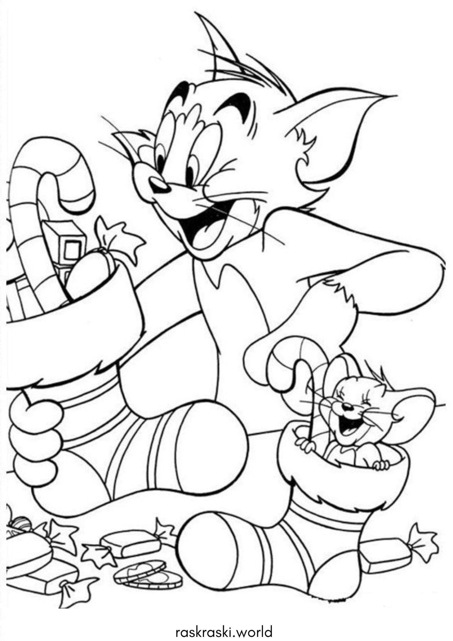 Раскраска Том и Джерри на Новый год